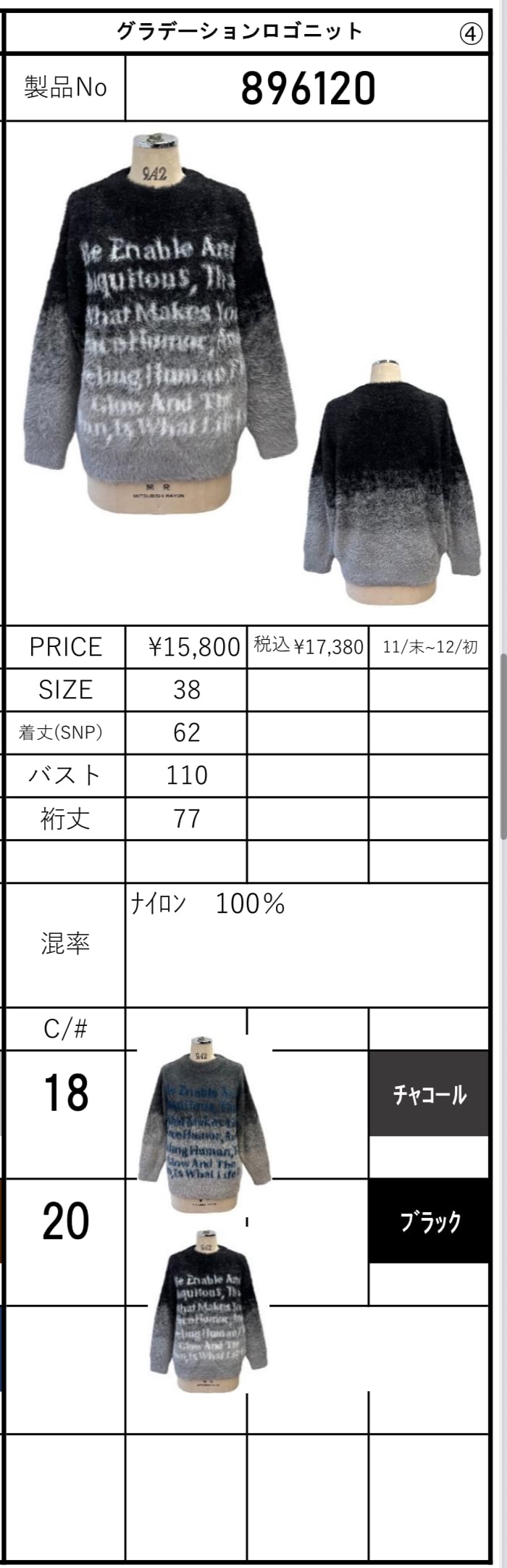 予約【ayane】グラデーションロゴニット 899120 アヤン