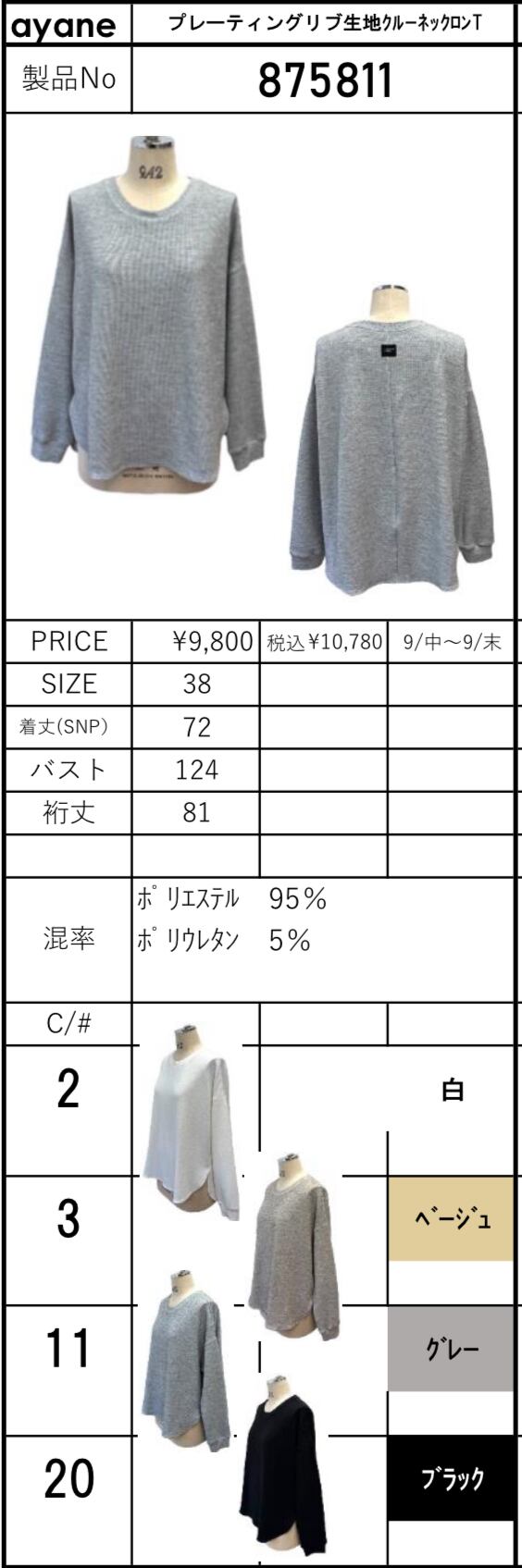 【ayane】プレーディングリブ生地クルーネックロンT 875811 アヤン