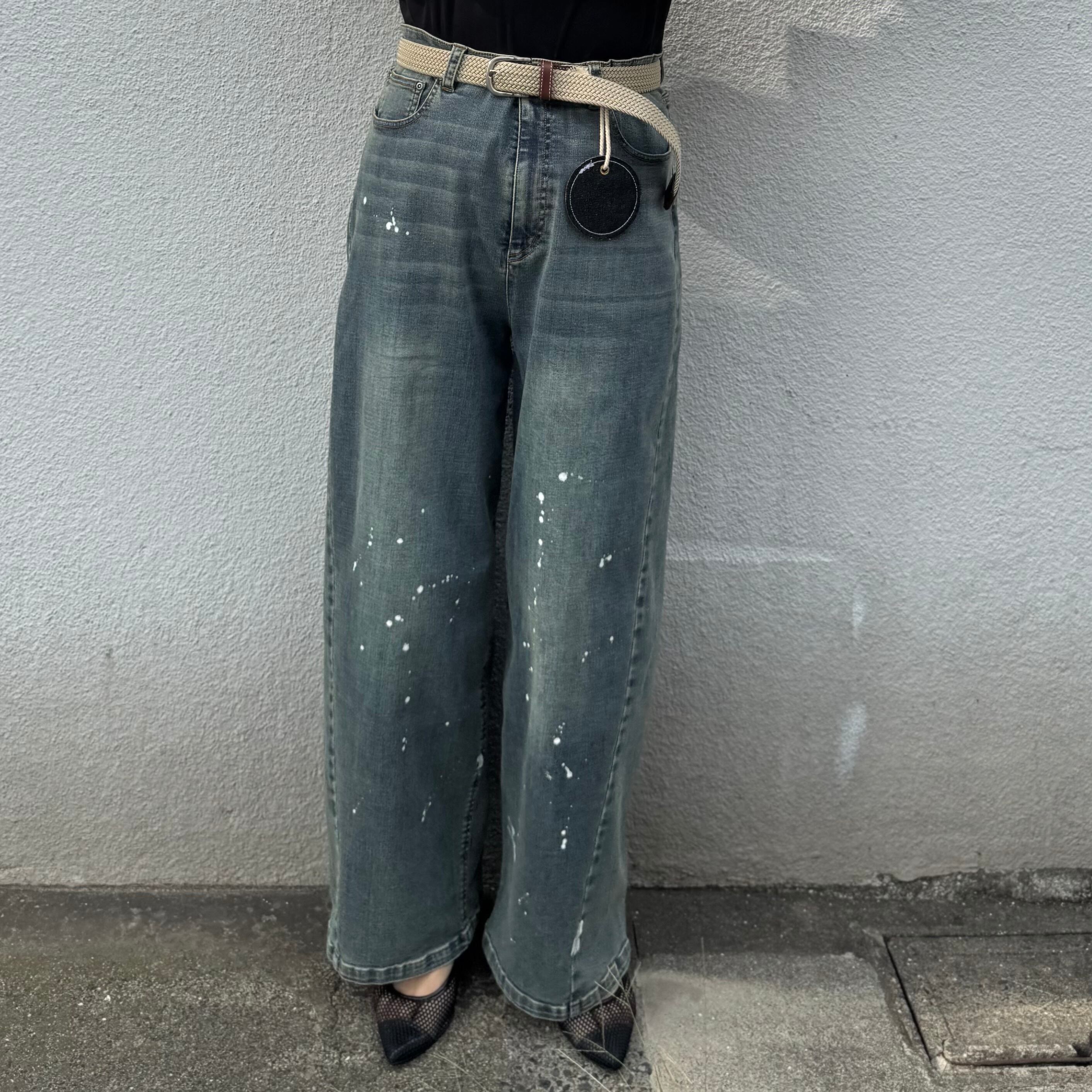 【ayane】ペイント加工バレルレッグデニムパンツ 875815 アヤン