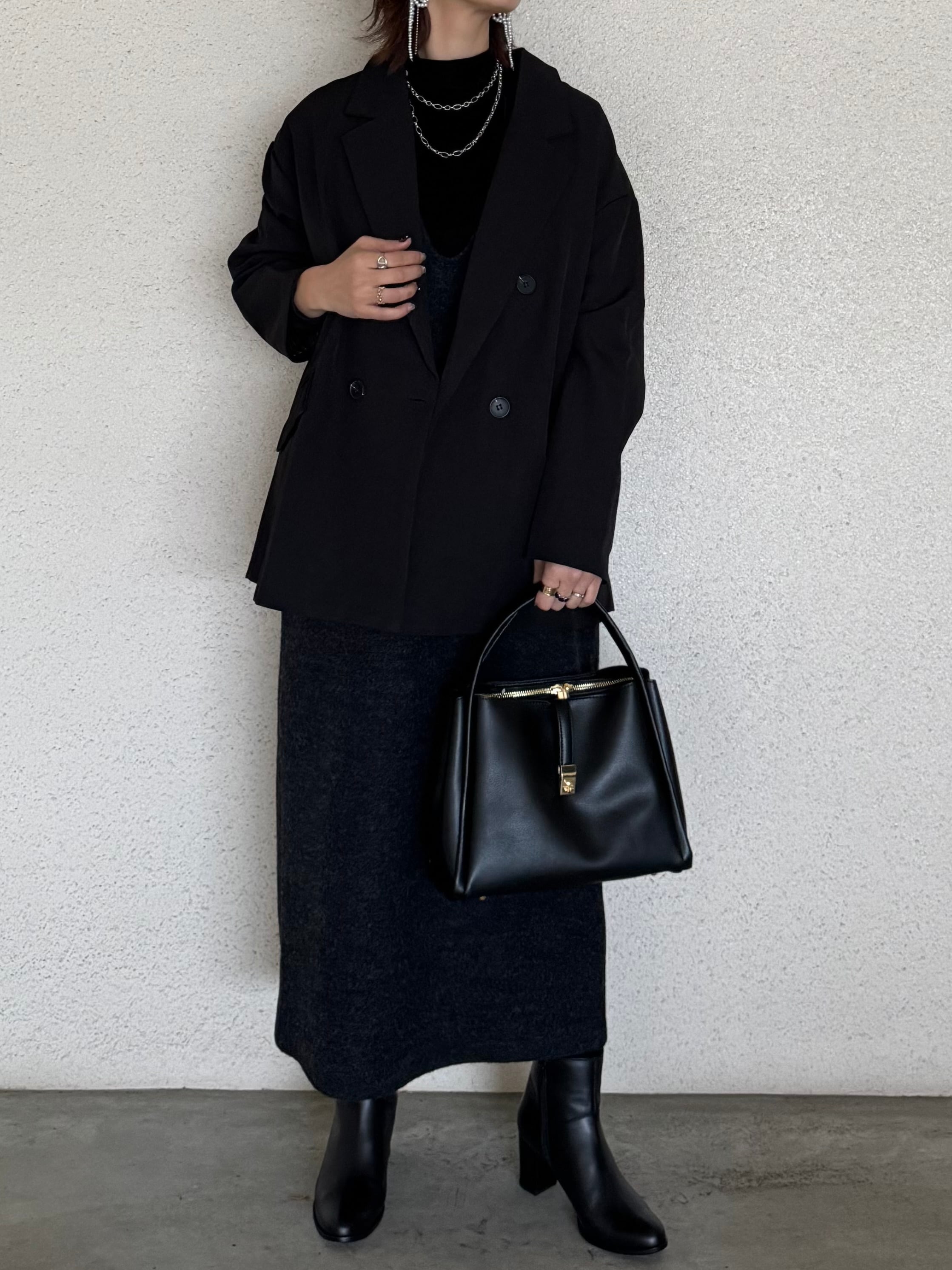すこし長めの丈感できっちり感の強いジャケット