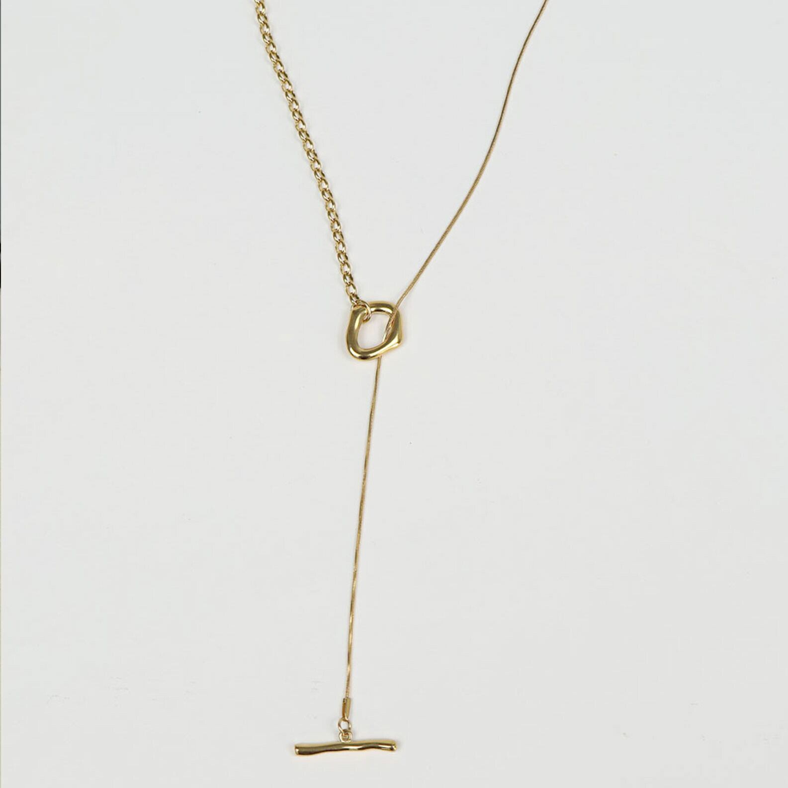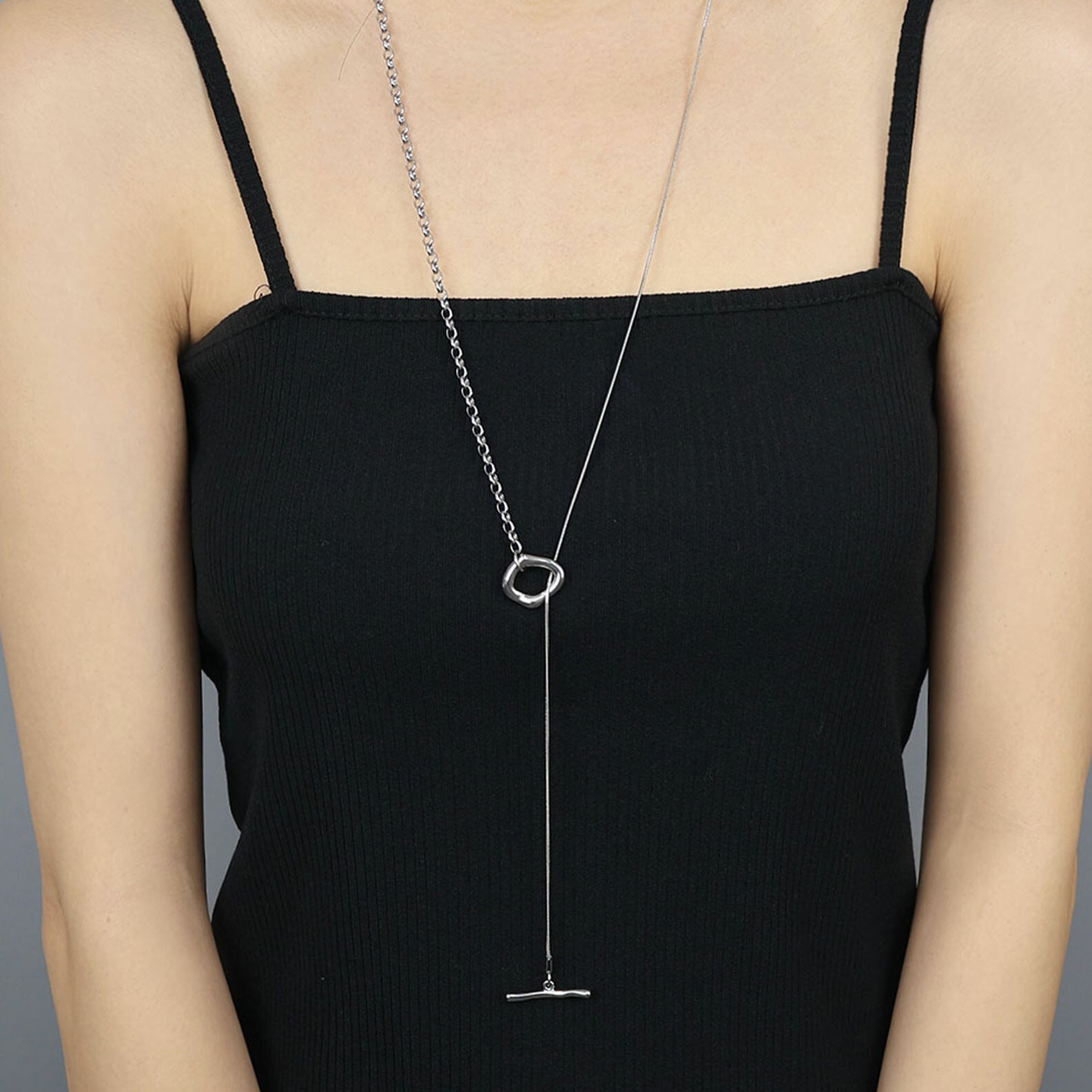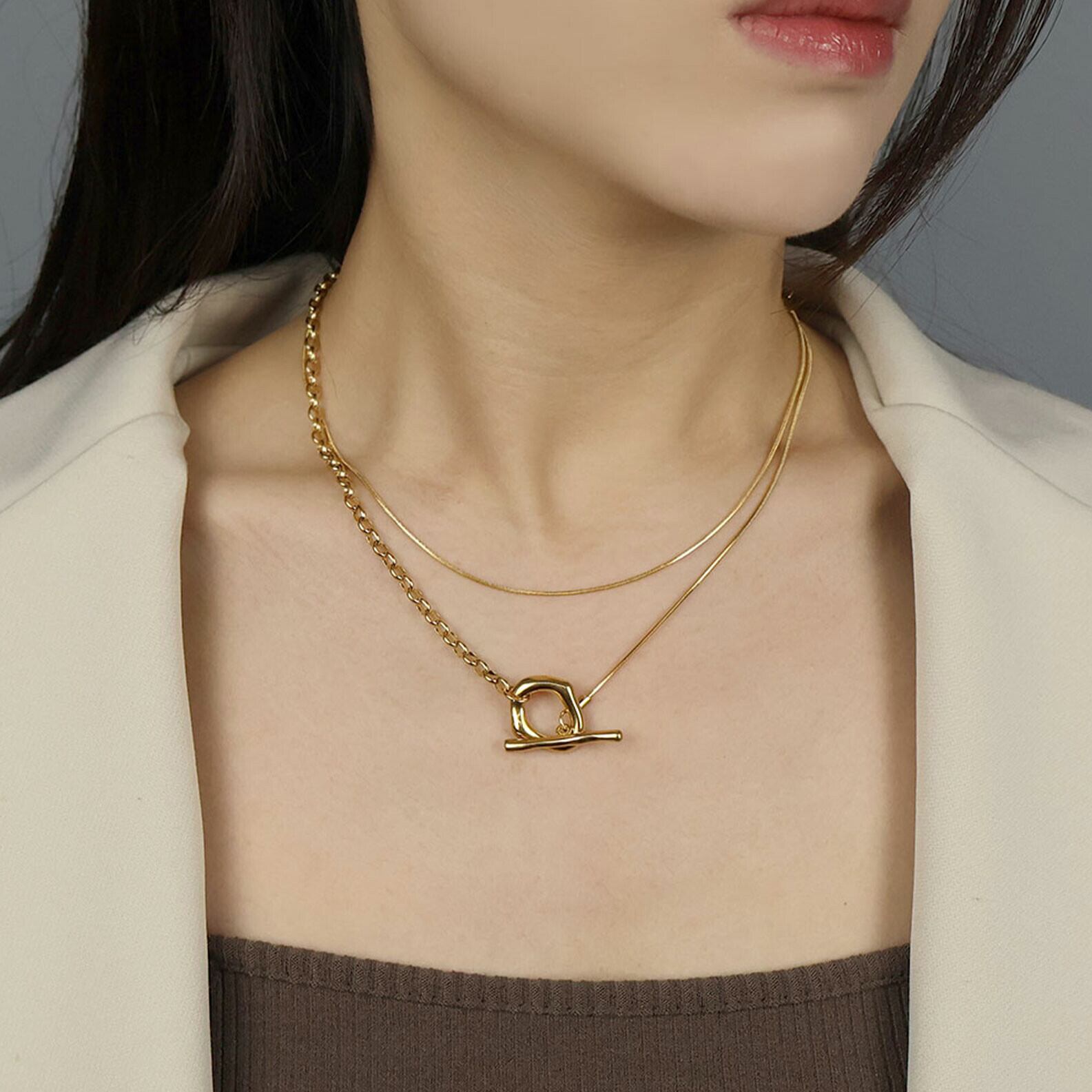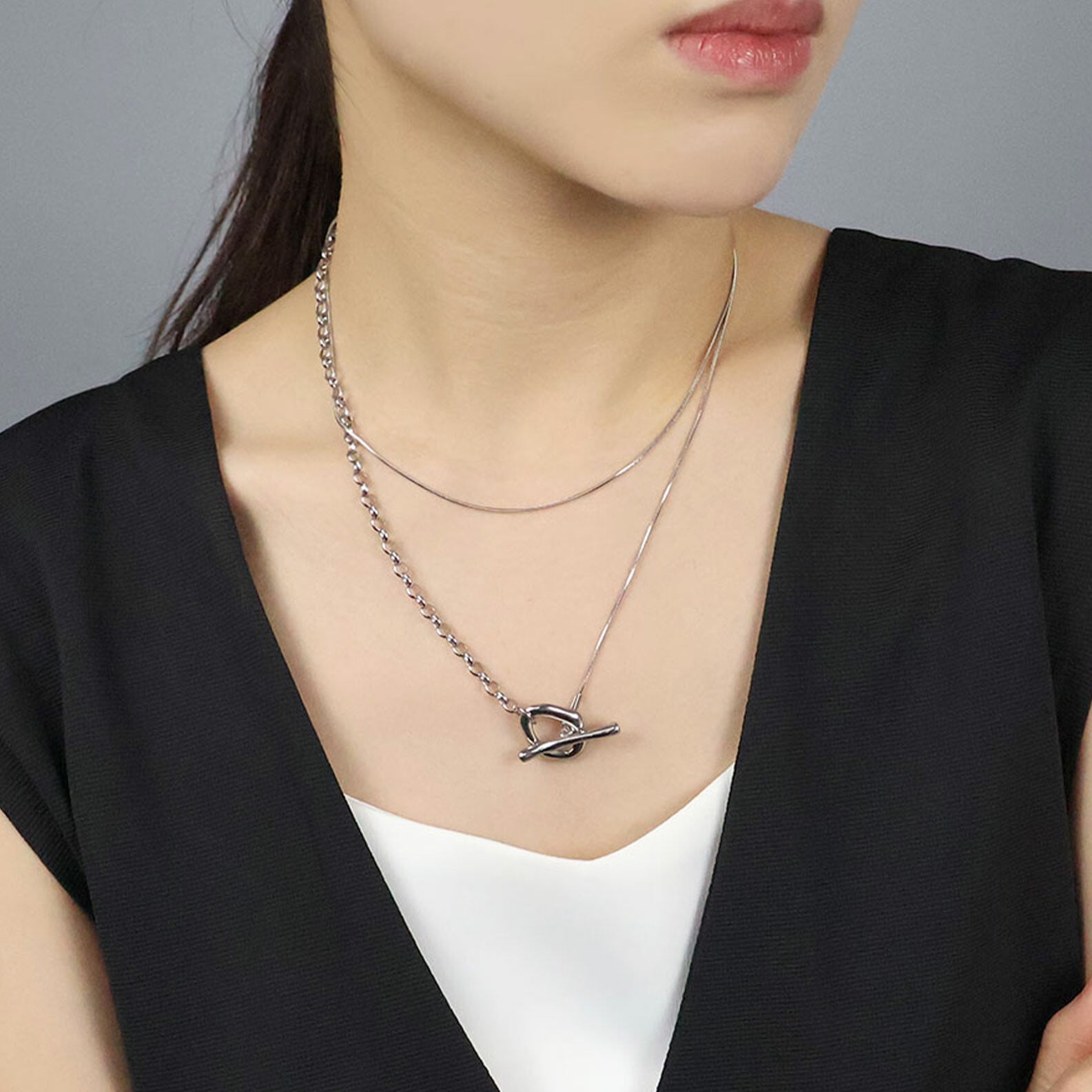 【金属アレルギー対応 3way コンビチェーン マンテル Yシェイプネックレス / サージカルステンレス 】スネークチェーンとオーバルチェーンを組み合わせたロングネックレス。マンテルパーツはニュアンス感たっぷりなデザインにし、よりトレンディに仕上げました。ロングネックレスとしてや、Yシェイプネックレス・2連ネックレスにもなる3way仕様が魅力のアイテムです。