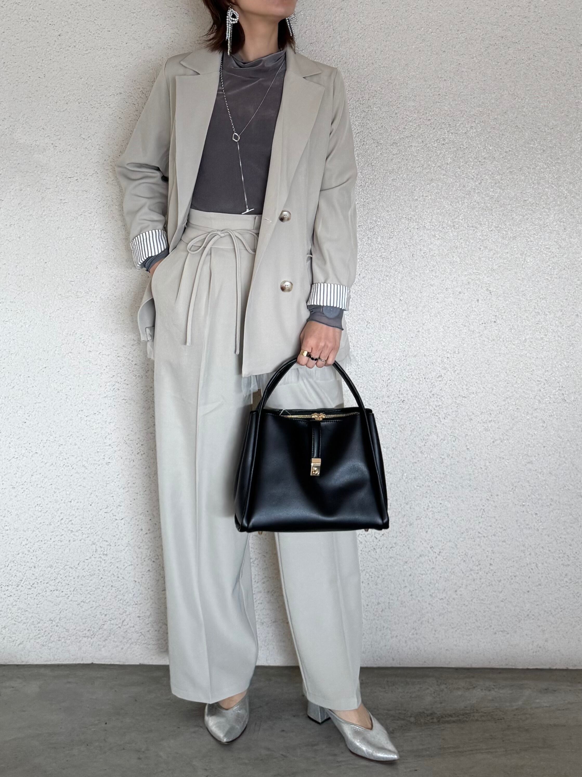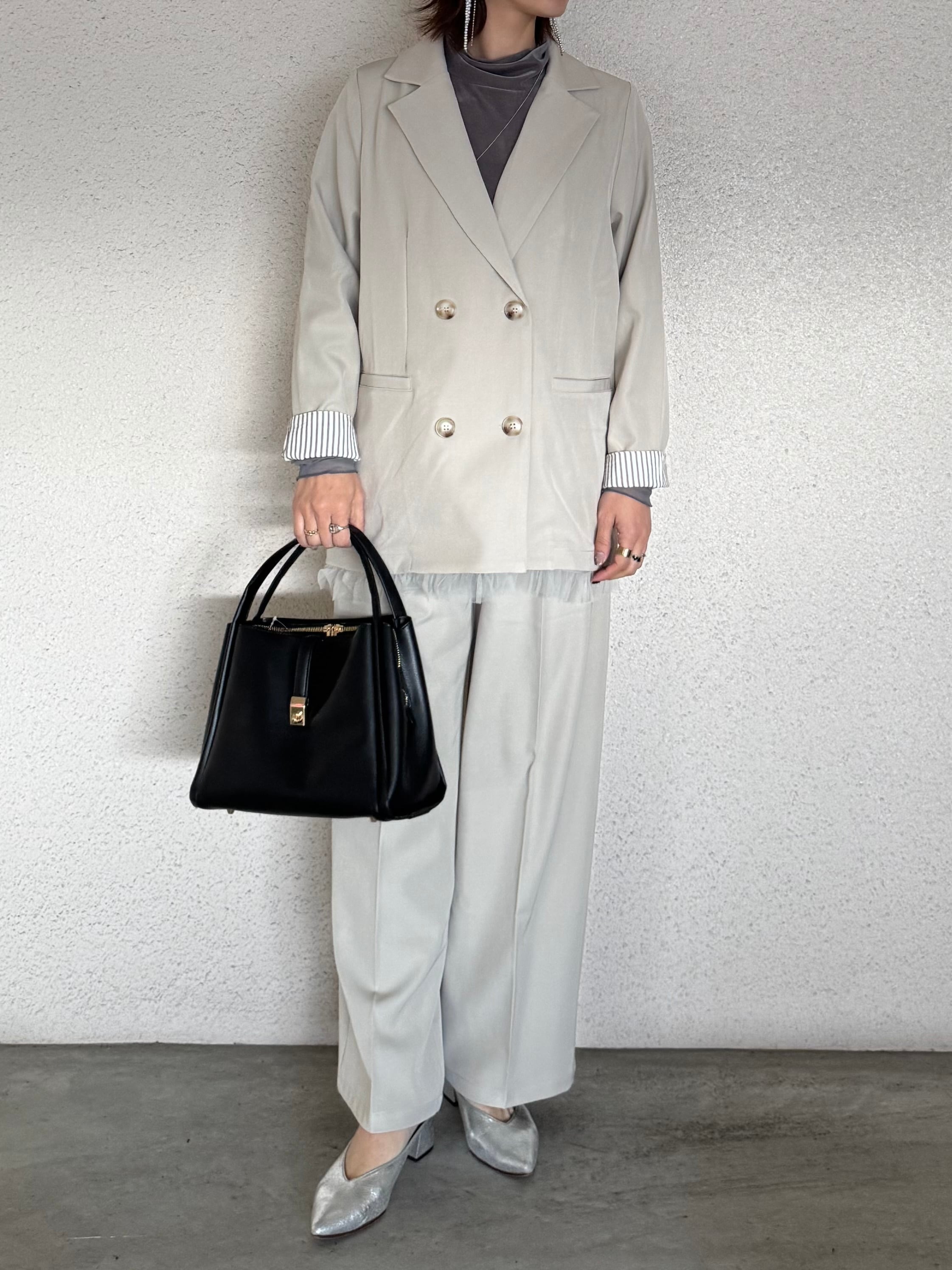 【bab】裾フリルダブルジャケット×パンツセットアップ ベージュ
